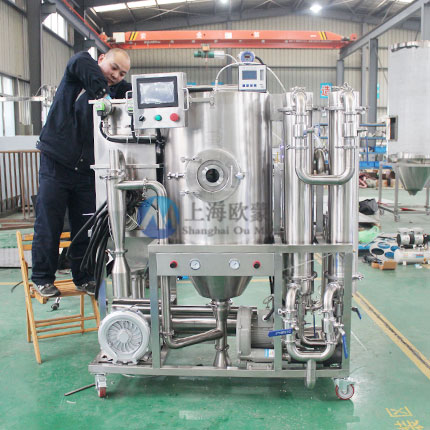閉式循環(huán)噴霧干燥系統(tǒng)是在密閉的環(huán)境下工作,干燥介質(zhì)為加熱氣體,干燥塔內(nèi)為正壓操作,若內(nèi)部壓力下降,壓力變送器就能自動控制氣進(jìn)入量,以保證系統(tǒng)壓力平衡。